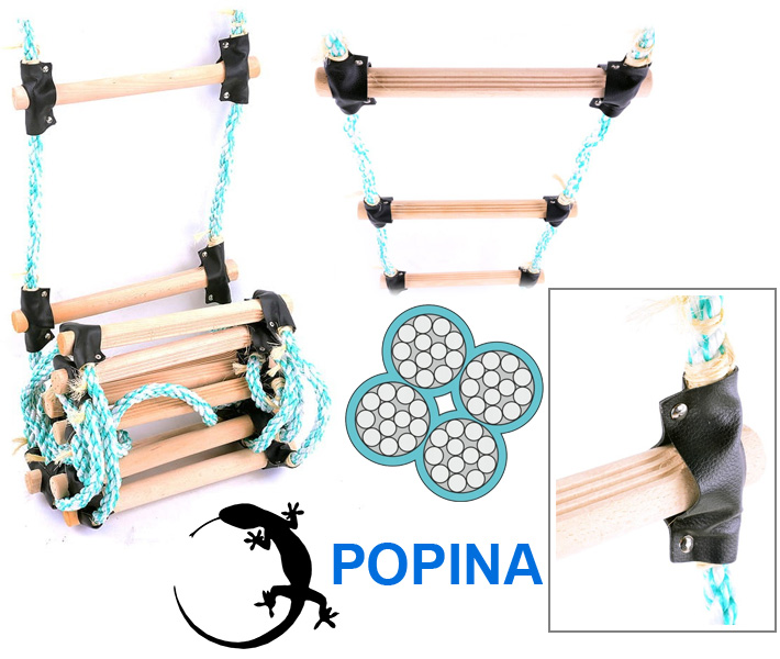 Vysoká kvalita zpracování, bukové příčky, protiskluzové rýhované nášlapy, extra pevné lano spletené z 48 pramenů. Veškeré části žebříku jsou odolné vůči povětrnostním vlivům, vhodné pro extrémní zatížení a dlouhodobé každodenní používání.