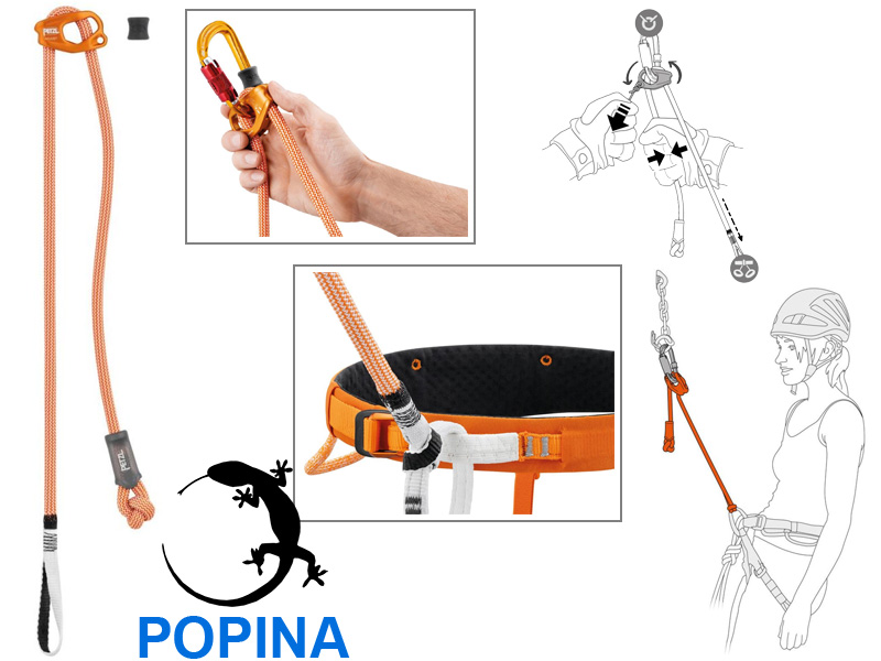 Nastavitelná délka smyčky je od 15 do 95 cm. Dynamické lano o průměru 9,0 mm pomáhá snížit rázovou sílu přenášenou na uživatele v případě krátkého pádu (je-li pádový faktor menší než 1). Popruhová smyčka z vysokomodulárního polyethylenu (HMPE) (patent Petzl) našitá na konci lana slouží k připojení do jistícího oka na úvazku liščí smyčkou; Zabírá méně místa v jstícím oku a je snadno viditelná při manipulaci s lanem a ostatním vybavení, když sedíte ve štandu.